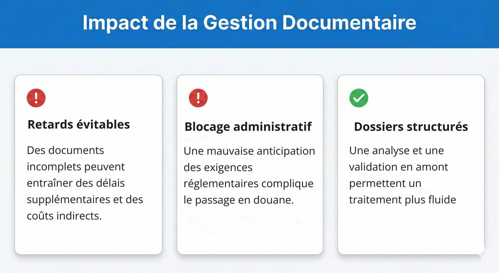Les retards, blocages et demandes complémentaires en douane sont souvent liés à des dossiers incomplets ou mal anticipés.